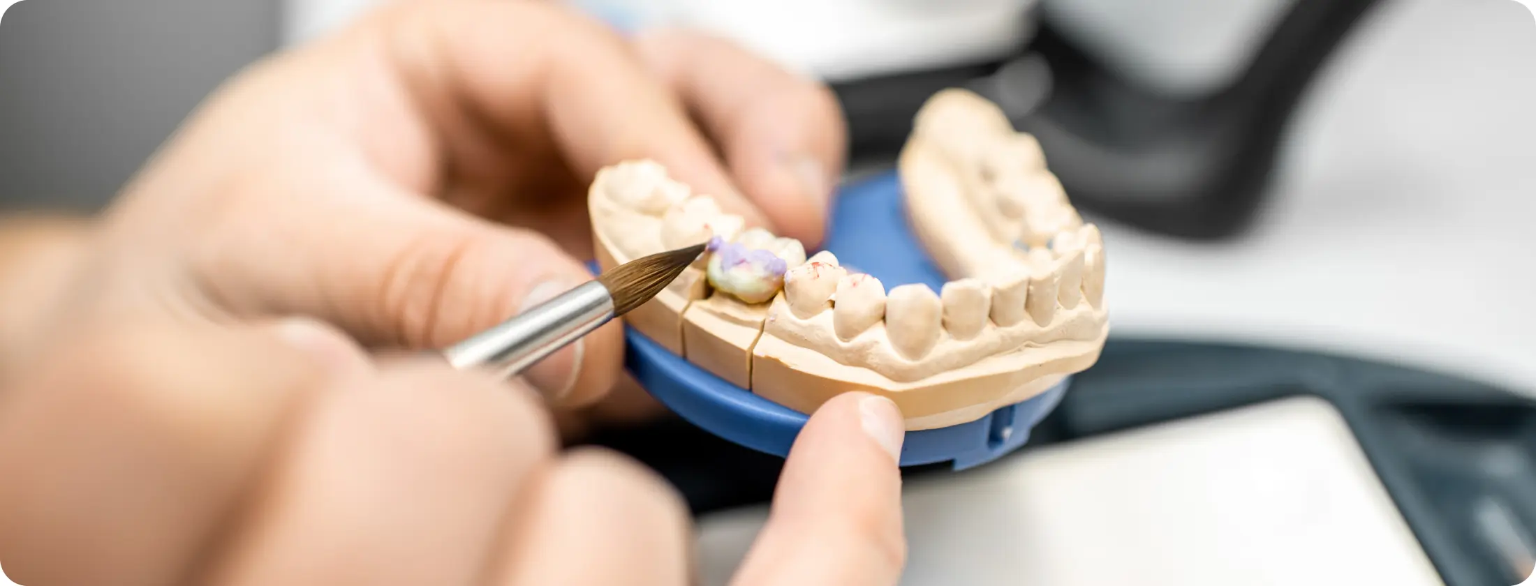 技工士の手による色づけ・形の調整・最終の磨き上げが欠かせません。